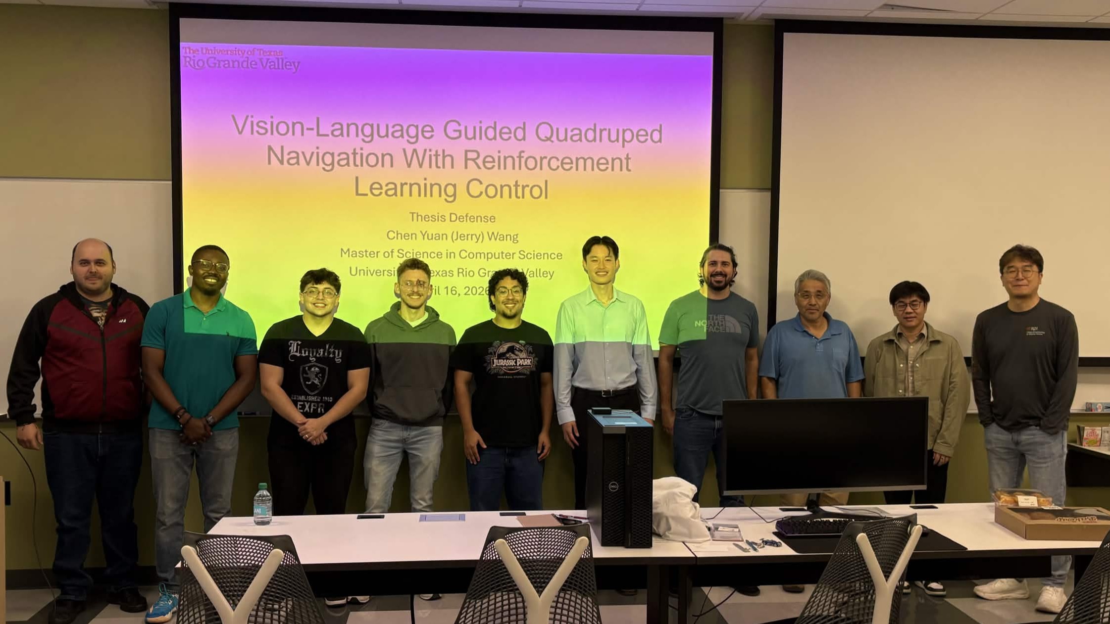 Congratulations to Jerry Wang for successfully defending his Thesis on "Vision-Language Guided Quadruped Navigation with Reinforcement Learning Control"!
